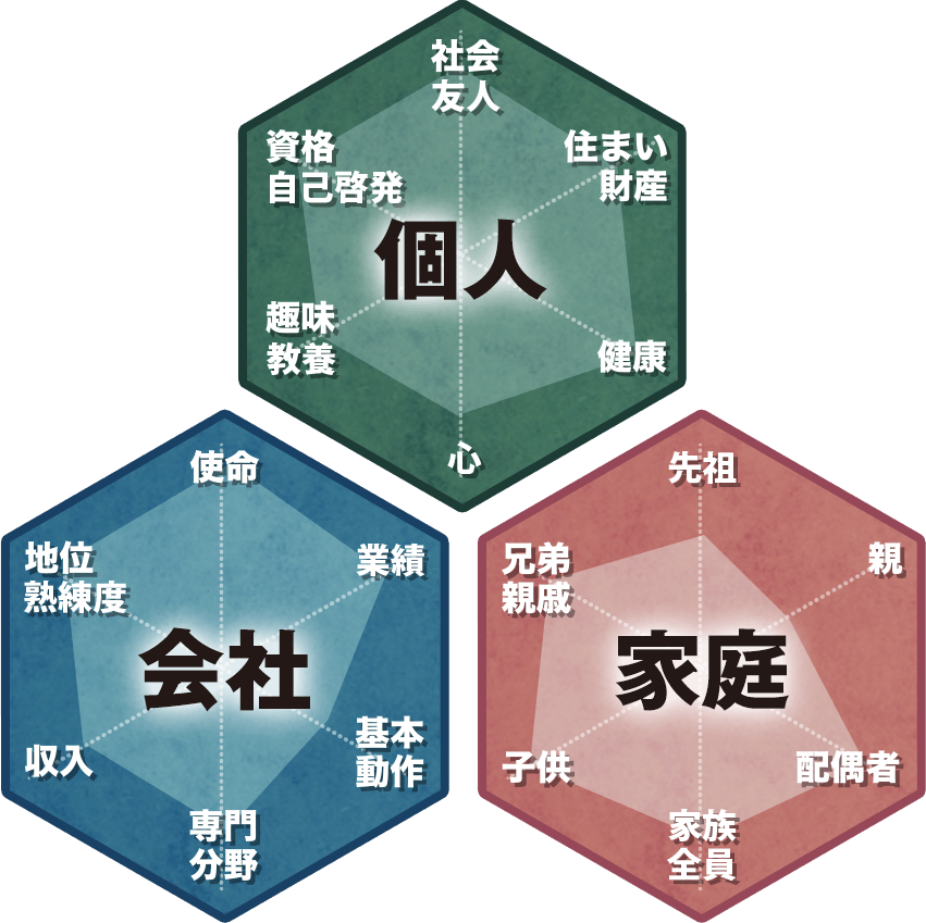 「個人」「家庭」「会社」という人生の全ての領域において、短期から長期の「ありたい姿」と「行動計画」